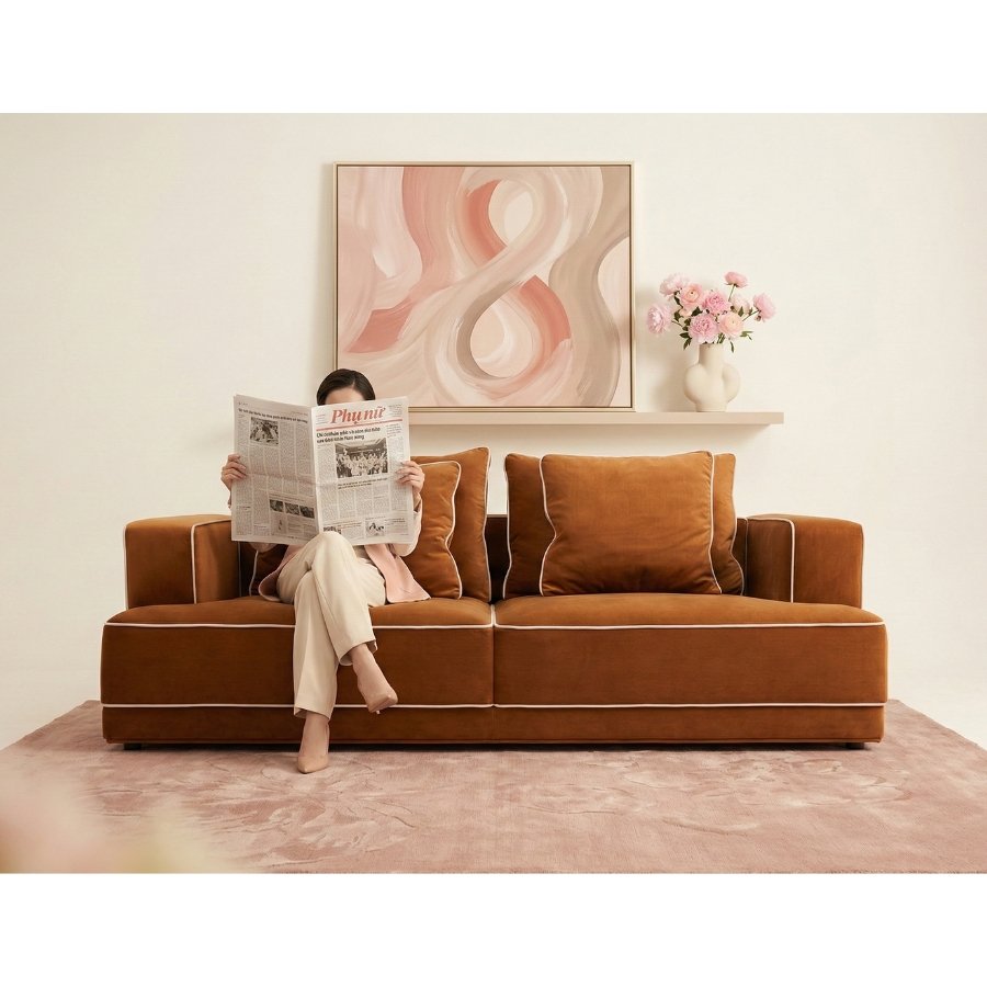 Chân thép không gỉ, Da bò nhập khẩu Ý, Da microfiber, Khung gỗ sồi, Vải nhập khẩu Bỉ